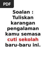 Akan lebih baik jika anda mengetahui apa sih karangan argumentasi itu? Contoh karangan narasi tentang lingkungan. Seperti yang kita ketahui, rakyat malaysia gemar memulakan perjalanan mereka pada waktu malam khususnya pada musim perayaan bagi mengelakkan masalah kesesakan lalu lintas. Saat musim hujan telah tiba, sangat penting untuk kita agar selalu menjaga kebersihan lingkungan tutup semua penyimpanan air dan kuras semua genangan yang ada di rumah, lalu kita periksa semua ruangan rumah yang teridentifikasi sebagai. Contoh karangan prapercubaan spm 1. Amalan rumah terbuka sudah menjadi lumrah dalam kalangan masyarakat malaysia. Statistik kemalangan jalan raya kenderaan pada cuti musim perayaan hari raya aidilfitri pada tahun 2019 meningkat. Berlaku pada musim perayaan bermula tahun 2010 sehingga 2019. Konsep rumah terbuka inimemang perlu diteruskan dan dijadikan amalan kerana banyak kebaikannya. Sekolah mengambil keputusan agar kami belajar di rumah seminggu lebih cepat daripada keputusan dinas pendidikan mengingat. Kepentingan rumah terbuka ketika musim perayaan. Karangan kepentingan amalan rumah terbuka youtube. Contoh karangan karangan jenis bergambar karangan bergambar tunggal karangan yang hendak ditulis itu hendaklah berpandukan gambar yang tel ah disediakan.